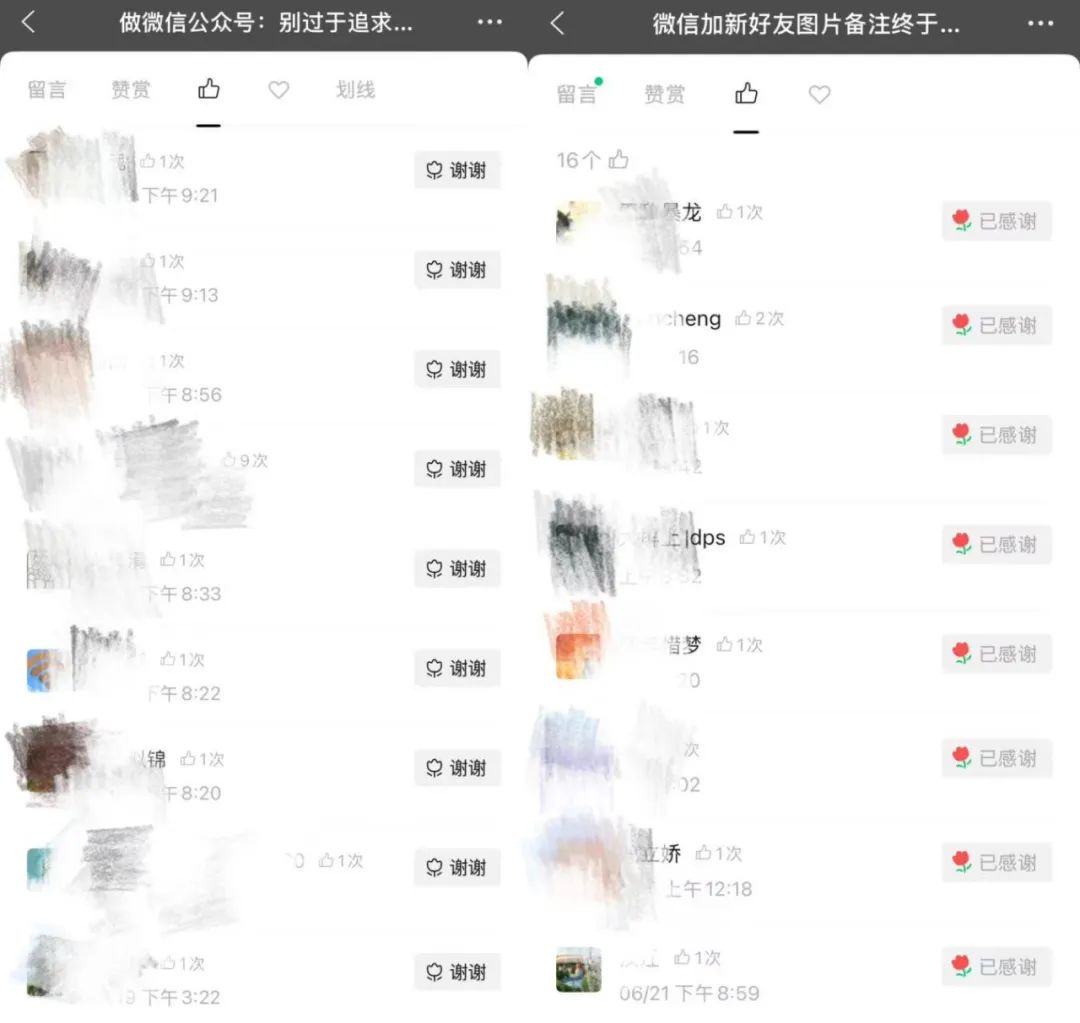 或许,也不能高估公众号作者与点赞者之间的这种互动,有些用户看不懂这些互动,有些用户可能是手滑点赞,有些用户可能对所谓的“谢谢”没所谓。